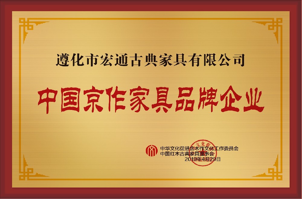 中國京作家具名字號、中國宮廷家具造辦技藝傳承品牌企業